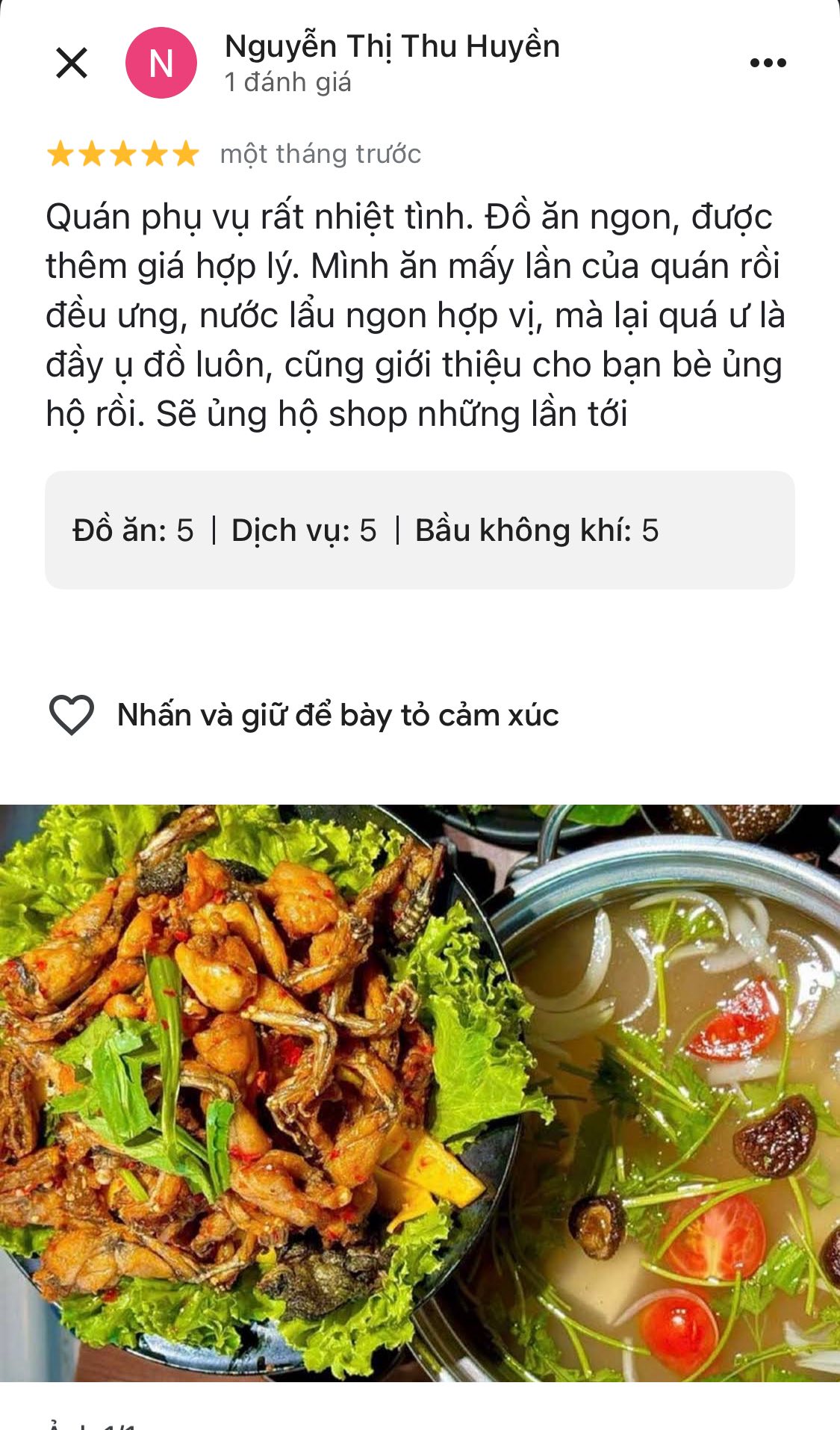 Lẩu Ếch Huyền Anh xin cảm ơn những đánh giá tích cực của quý khách hàng ❤️.