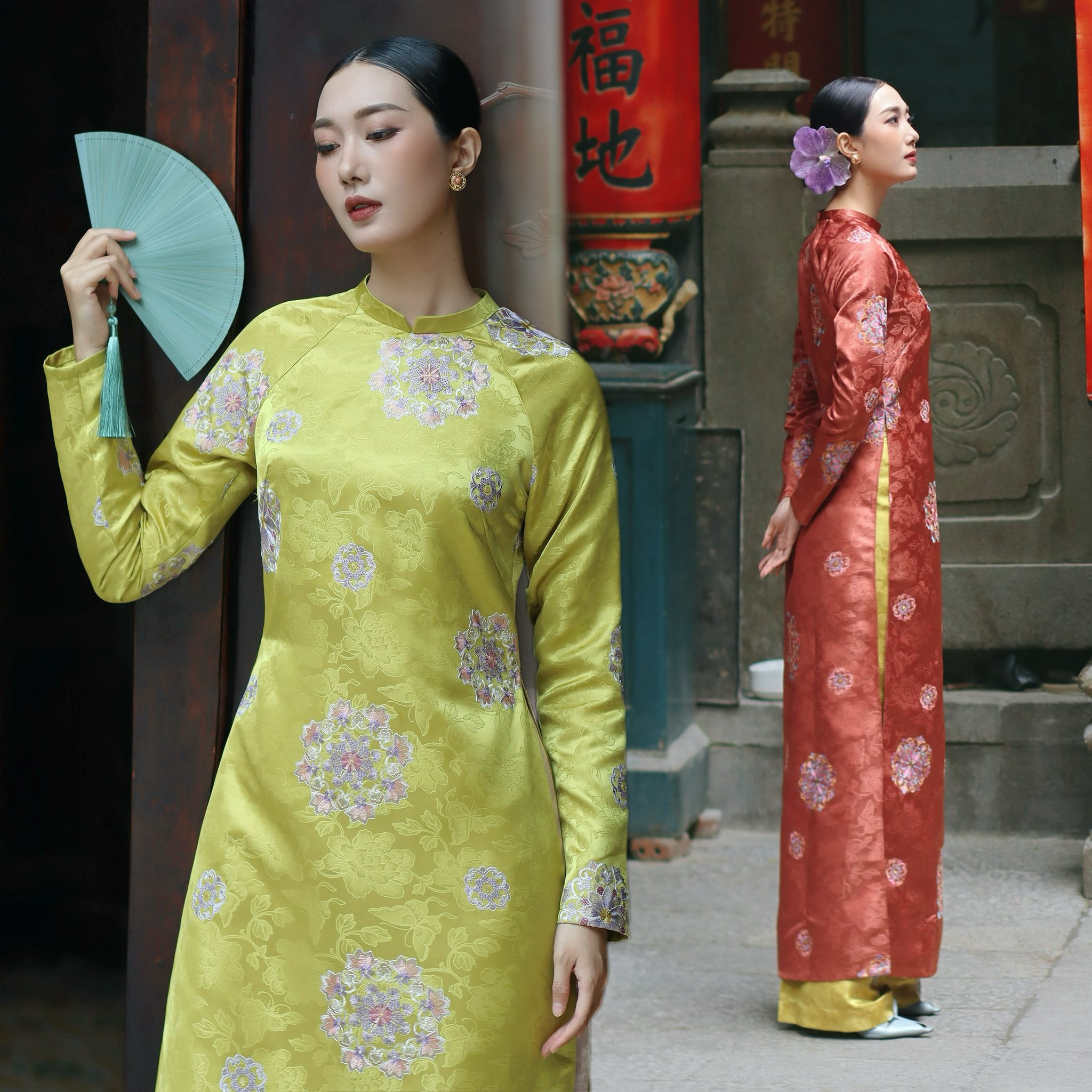 Bộ sưu tập áo dài Tết của Première là sự kết hợp hài hòa giữa nhiều phom dáng, chất liệu và sắc độ — từ lụa mềm mại, gấm dệt tinh xảo đến những bề mặt vải giàu chiều sâu thị giác. Mỗi thiết kế được chăm chút để tôn dáng, giữ nét nền nã và làm nổi bật khí chất riêng của người mặc.