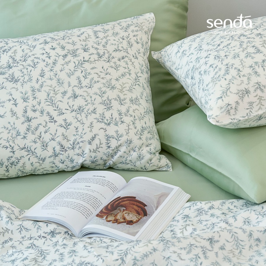 🍃 Ngày mới bắt đầu nhẹ nhàng hơn với chiếc giường xanh mát và họa tiết lá nhỏ xinh. Từ gam màu xanh dịu mắt đến những chiếc lá li ti, tất cả hòa lại khiến không gian phòng ngủ trở nên thật trong lành dễ chịu. Khi chạm vào lớp vải Micro Modal mềm mịn, mát da, bạn sẽ cảm nhận rõ cảm giác thư thái lan khắp cơ thể mỗi lần ngả lưng xuống giường.
