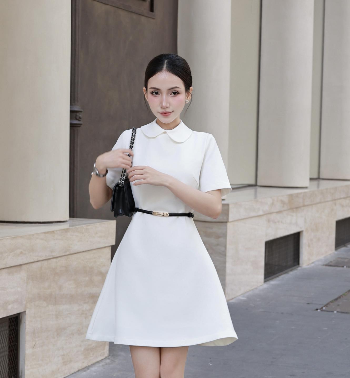 Gam trắng thanh khiết mang lại cảm giác chỉn chu, sang trọng – phù hợp đi làm, đi tiệc nhẹ, gặp gỡ gia đình hay dạo phố đầu xuân.