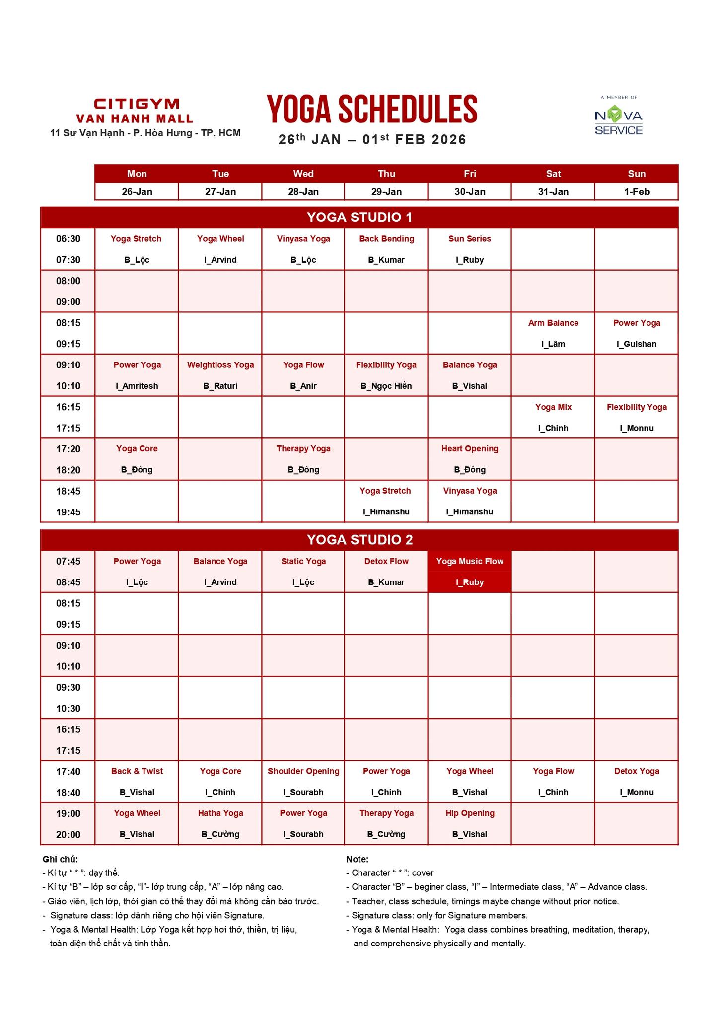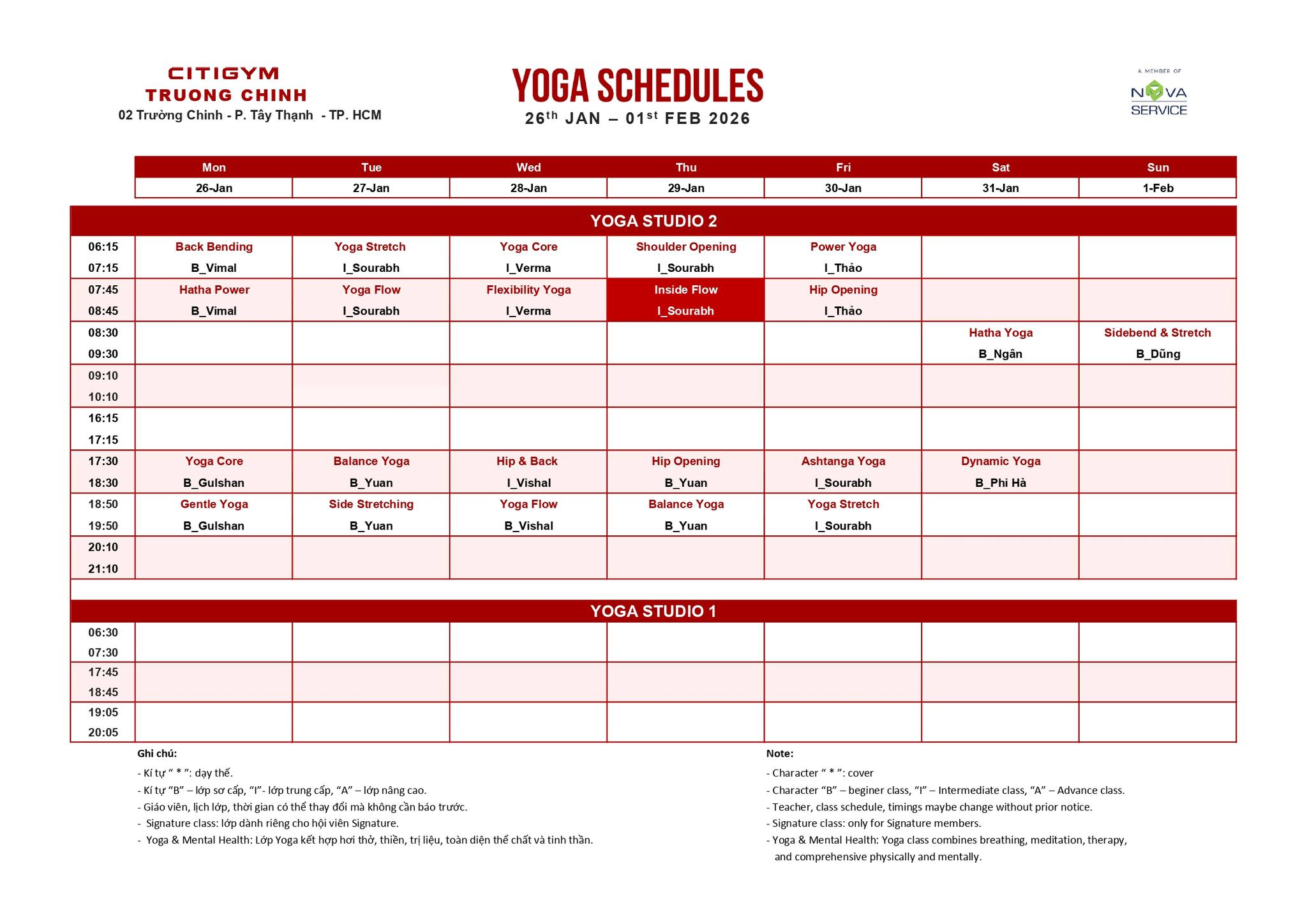 Lịch học Yoga và Group X tại CITIGYM các chi nhánh: Thành Thái, Vạn Hạnh, Phổ Quang, Sunrise, Bến Vân Đồn, Quang Trung, Điện Biên Phủ, Lê Văn Việt và Trường Chinh.