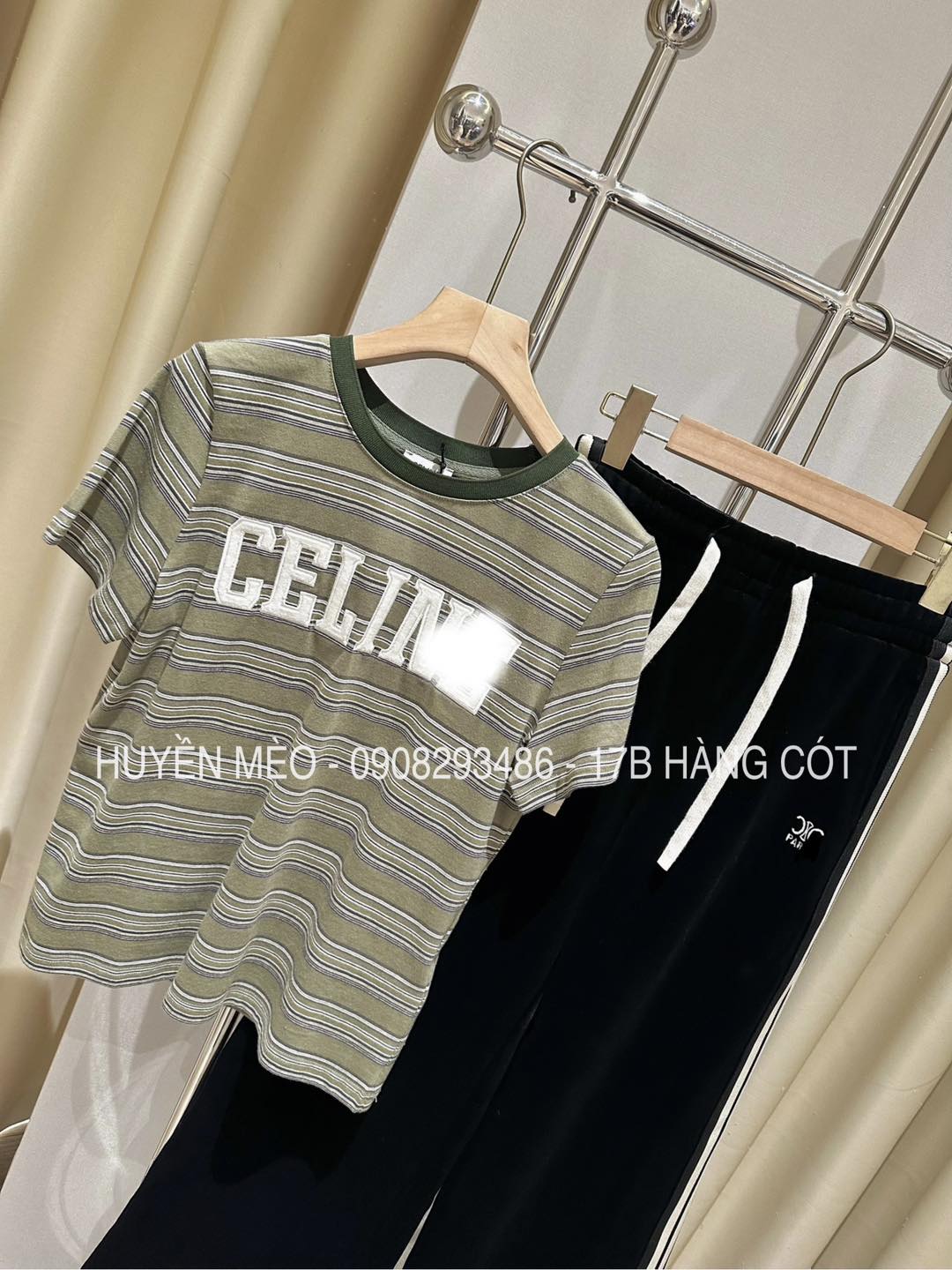 #Set #áo #thun #kẻ #Celi #phối #cùng #quần #nhung #suông #đen #viền #trắng #nhìn #vừa #năng #động #vừa #chanh #sả #cực #xịn #Form #lên #dáng #siêu #dễ #mặc #che #khuyết #điểm #tốt #mà