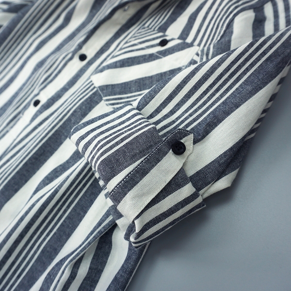 Kiểu dáng: sơ mi cổ trụ, tay dài cài bát, giấu 1/2 nút thời trang